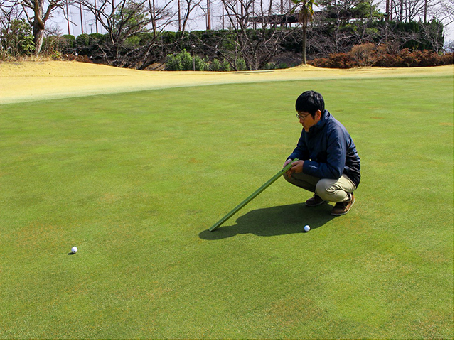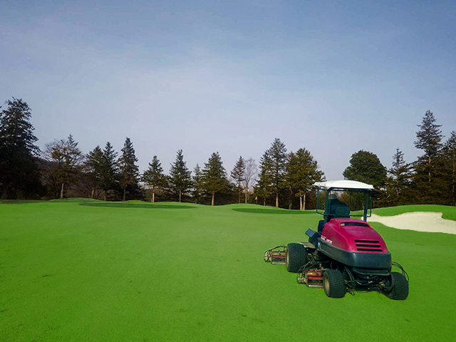 コース管理者にとって一番やりがいを感じる瞬間は、自分たちが綺麗にしたコースでお客様が笑顔でプレーしていただくことです。自然が相手の仕事なので、時には思ったような芝の管理が出来ずに、悩むことが多々あります。コースに行ってみると落葉が散乱していたりして予定外の整備が必要になるときもあります。季節や天候によって芝の育成状況は変わるため、それに管理方法も合わせなければなりません。