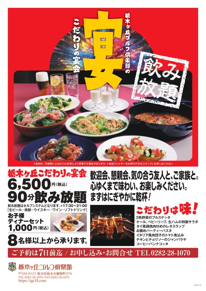 栃木ヶ丘こだわりのメニューで宴会はいかがですか。