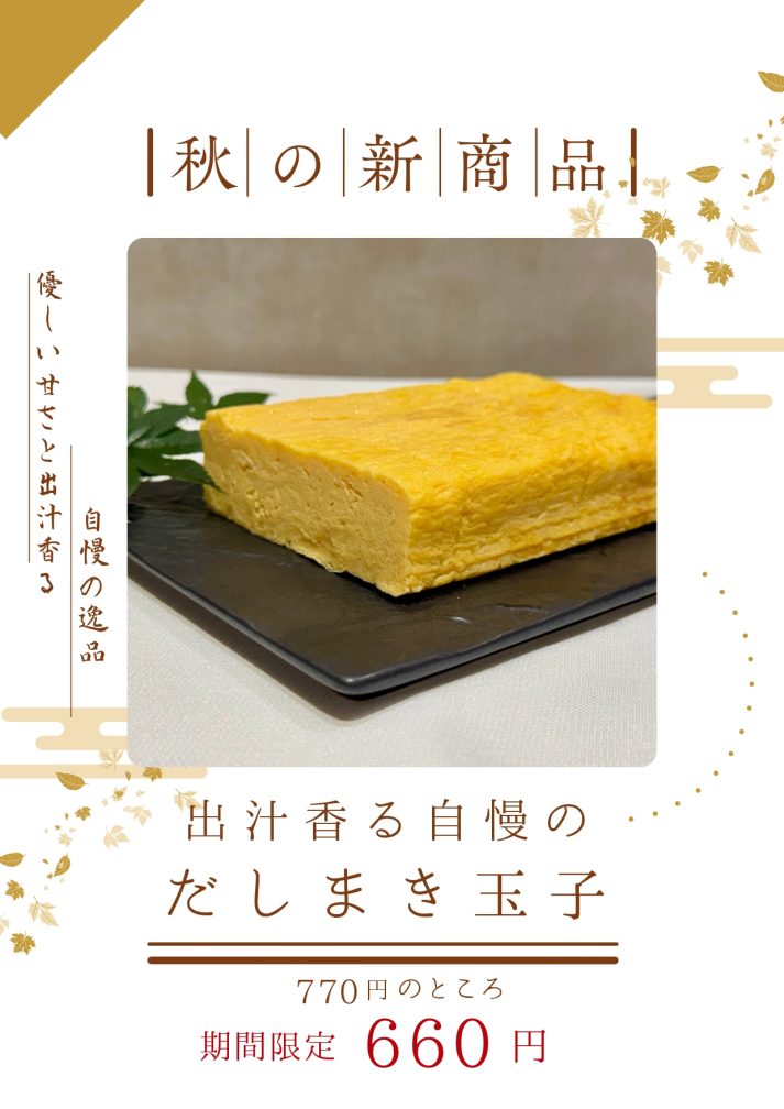 「出汁香る自慢のだしまき玉子」通常770円のところ期間限定660円(税込)です。